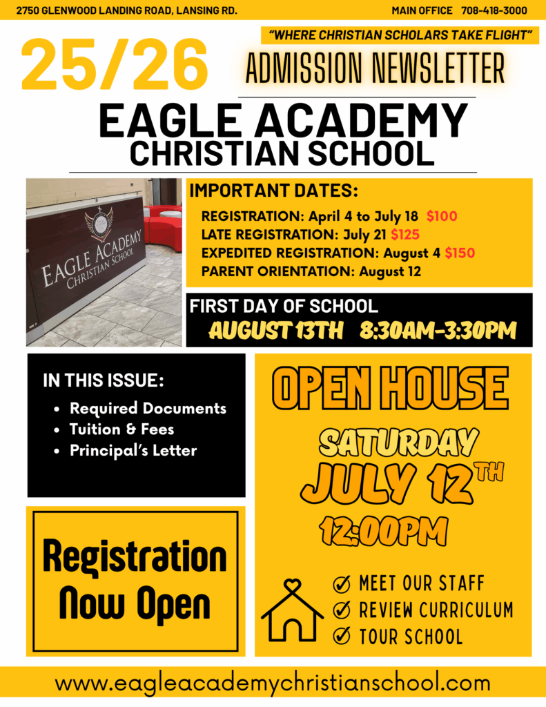 EACS Admission Newsletter Check-out our Admission Newsletter to learn how your child can become an Eagle Scholar.